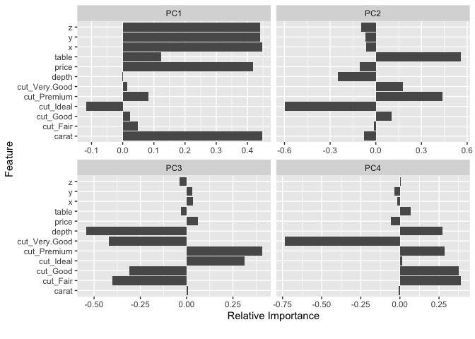 plot_prcomp(diamonds, maxcat = 5L)#> 2 features with more than 5 categories ignored!